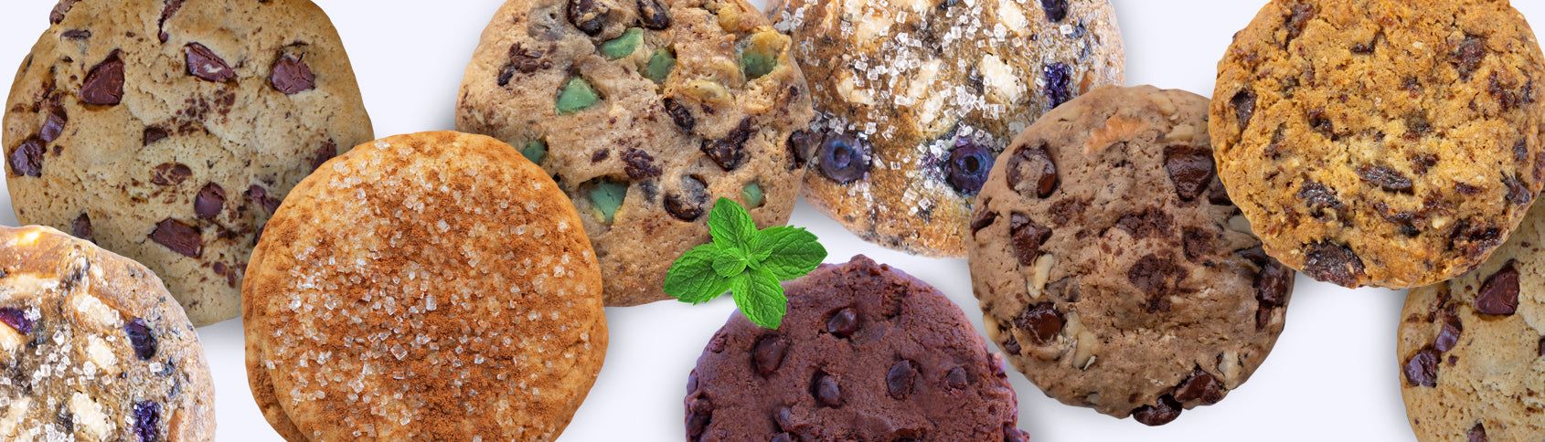 We have a no gluten chocolate chip cookie and no gluten orange oatmeal cranberry cookie. We also have a vegan dark chocolate oatmeal cookie. Please note that these cookies are made in a facility that also processes cookies that contain gluten.